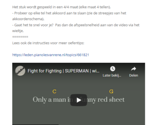 Meespeelvideo's van leuke bekende liedjes waarbij je meespeelt en oefent met het echte nummer. De akkoorden worden steeds in beeld gebracht zodat je precies kunt zien wanneer je welk akkoord moet spelen.